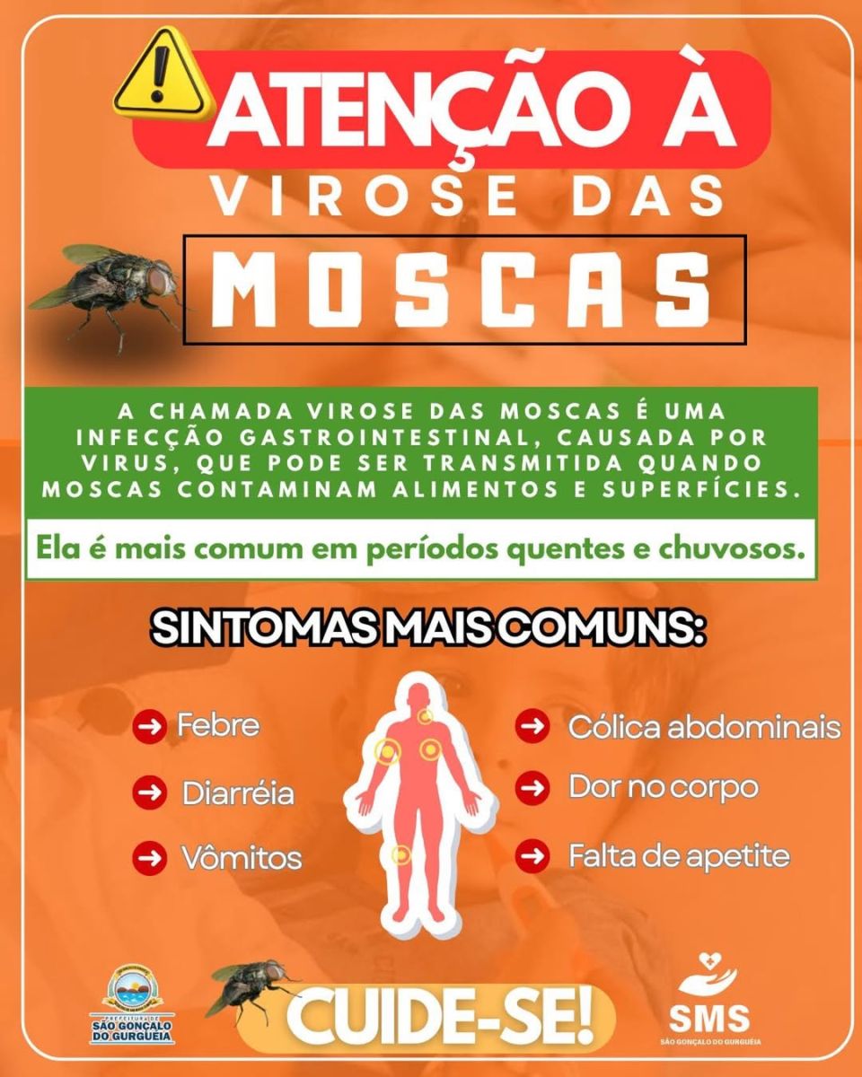 A Secretaria de Saúde de São Gonçalo do Gurgueia (PI) chama a atenção da população sobre os cuidados preventivos contra a “virose da mosca”, doença que costuma se espalhar no período chuvoso e que afeta principalmente crianças e idosos.
