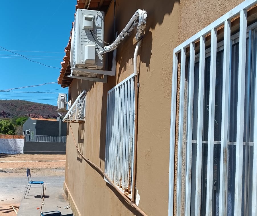 O sistema de captação de água para utilização na horta é simples e envolvem poucos materiais, é feito uma instalação de uma tubulação que sai dos ar condicionado da secretaria e das salas e vai até um reservatório de água onde fica armazenada.